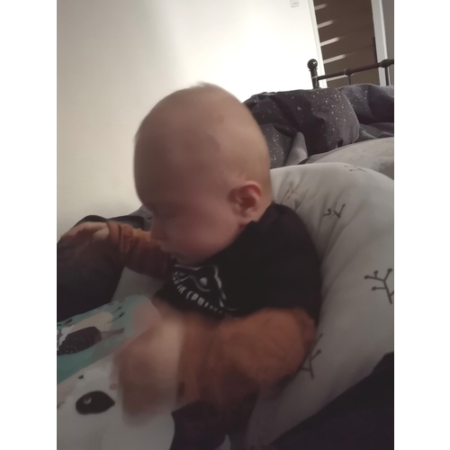 Ik ga de wandelwagen proberen, dan zit hij ook vast in een tuigje. De wagenbak wil hij niet liggend in mee, ben bang dat hij zichzelf over het randje kan trekken al, het lukt hem bijna om helemaal rechtop te komen namelijk.
