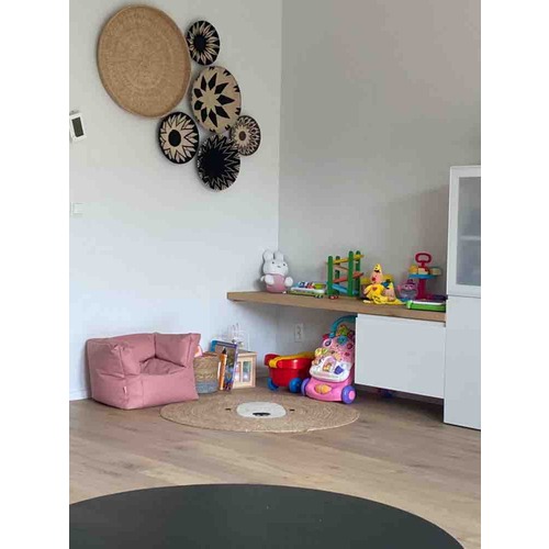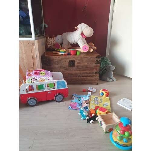 Wij hebben een flinke speelhoek in de woonkamer. Overdag wordt er flink geleefd/gespeeld, maar we zorgen er eind van de avond voor dat het weer netjes is.