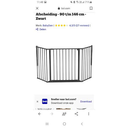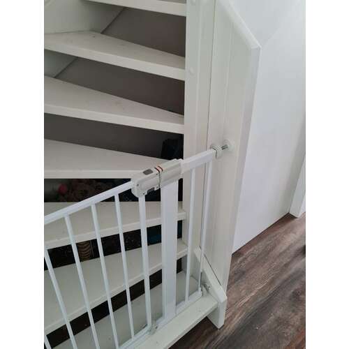 Wij hebben een oud huis met allemaal gekke hoeken. We hebben foto’s van de trap met maten opgestuurd naar traphekjes.nl. Zij hebben ons vervolgens geadviseerd. Wij zijn uitgekomen op baby dan flex. Die kan je samenstellen uit allemaal verschillende onderdelen, waardoor het eigenlijk altijd wel past.