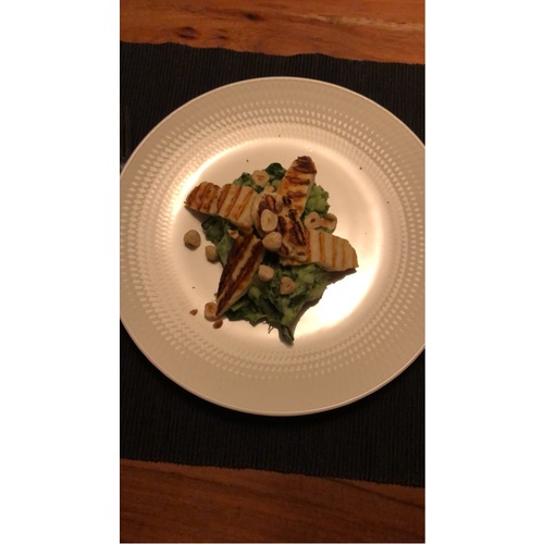 Gisteren de broccoli spinazie stamp met halloumi kaas en hazelnoten gemaakt..