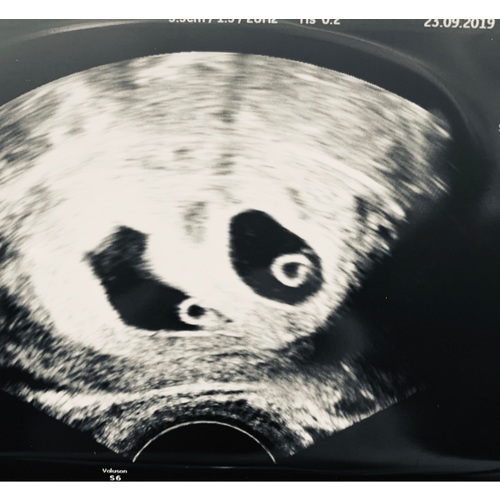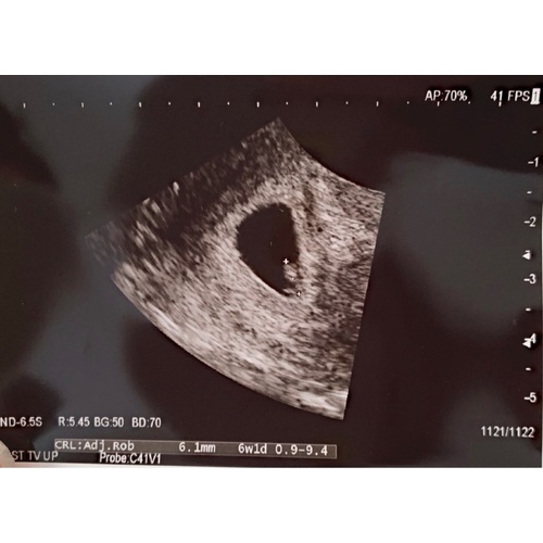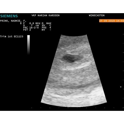 Vandaag een echo gehad en ze schat in dat ik tussen de 5,5-6 weken zwanger ben. Uitwendig zag ze wel wat, maar inwendig was het beter te zien en hebben we het hartje zien kloppen.