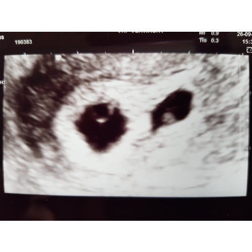 Dit is mijn echo van gisteren 5+5. Ook 2 vruchtzakjes en bij beide een hart ...