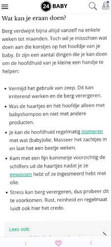 Zie aub punt 1 en 2 op afbeelding. Volwassen shampoo is sowieso niet ok voor je baby en zeep etc kan berg verergeren. Heeft dus ook niets te maken met te weinig reinigen van de hoofdhuid.