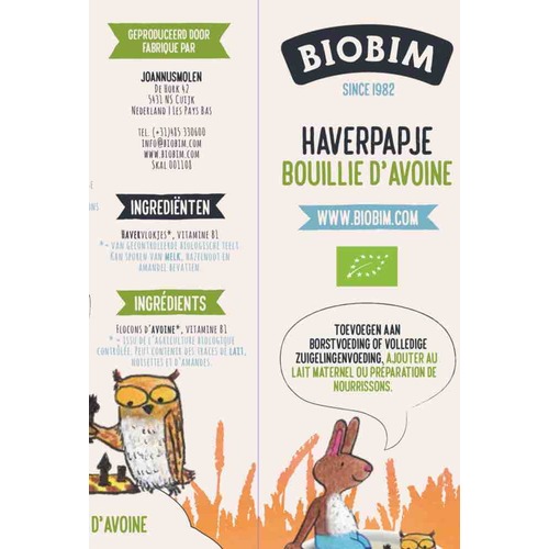 Wij gebruiken ook haverpap van biobim maar hier zit geen suiker in!