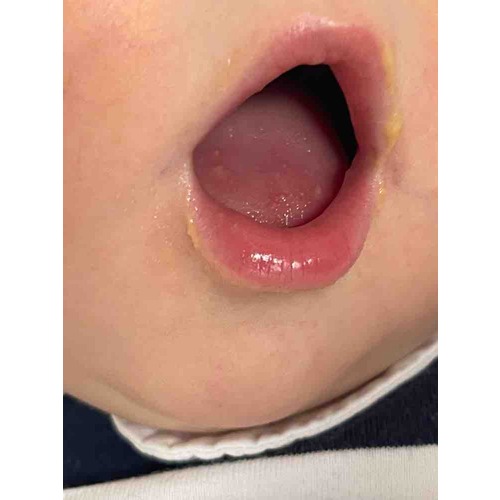 We hebben zoiets met onze zoon gehad. Was echt drama toen de blaasjes kapot gingen. Hij wilde niets meer eten en ook geen speen meer (daarna was hij daar wel vanaf, dat scheelde 馃槵).