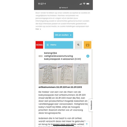 Voor de dames die een Hema slaapzak hebben: Ik zag op internet dat in Juli 2020 een veiligheidswaarschuwings was afgegeven voor de Hema slaapzakken. Ik heb niet verder uitgezocht welk type etc