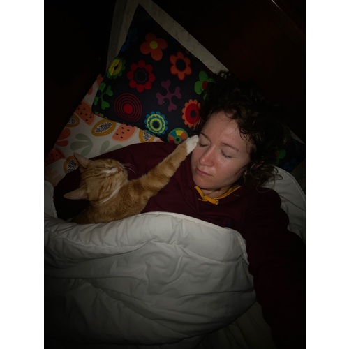 Dit vind ik een mooie oplossing! Mijn kat ligt ook altijd bij me. Ik kan haar er vanaf gooien wat ik wil, maar ze komt toch terug. Deur dicht resulteert in een paar maanden non stop snachts miauwen.. we hebben het wel eens geprobeerd🙄. Ze heeft flinke verlatingsangst door een zwerf verleden. Ik vind het ook heel gezellig nu dus we moeten iets vinden zodat ze er bij kan zijn. Dit klinkt goed☺