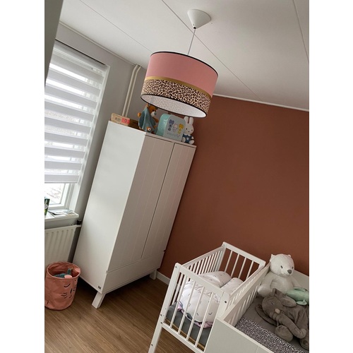 Wij hebben deze lamp van de Ikea voor aan het plafond. Het goude past in de kamer en de insneden geven een mooi effect op de muur. (In de andere kamers heb ik deze lampen ook in andere kleuren)