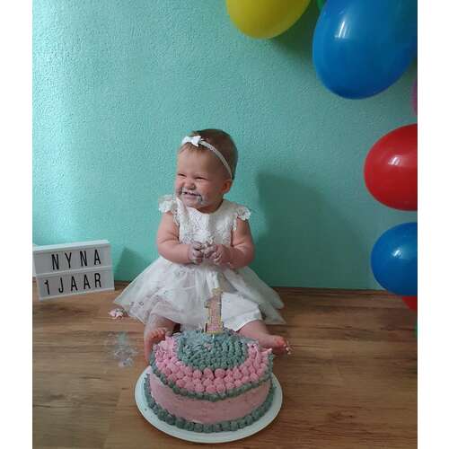 Ik twijfel ook. Ben bang dat m'n kind doodziek wordt als ze ineens zoveel suikers binnen krijgt馃槄 Misschien dat ik op zoek ga naar iemand die een mooie taart kan maken maar dan 'babyproof'.