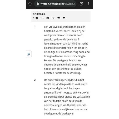 Je mag tot het kind 9 maanden is betaald onder werktijd kolven (max een kwa ...