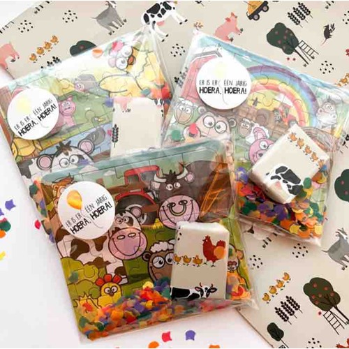 Ik dacht aan uitdeelboekjes van rupsje nooit genoeg en een cellofaanzakje/crêpepapier zakje (crêpepapier buiten, geeft ander misschien af) en daarin maïsvingers. Of indd van die mini soepstengeltjes. Ik wil iig iets doen wat hij zelf ook leuk en lekker vindt. Zodat hij er zelf ook van kan genieten.
