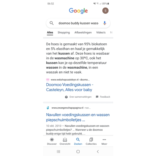 Mijn schoonmoeder heeft een nieuwe goed voor me gemaakt en toen meteen het kussen ook gewassen (had hem te leen van mn schoonzus). Volgens haar is ie prima uit de was gekomen 馃槃. Ik ga hem zondag ophalen.