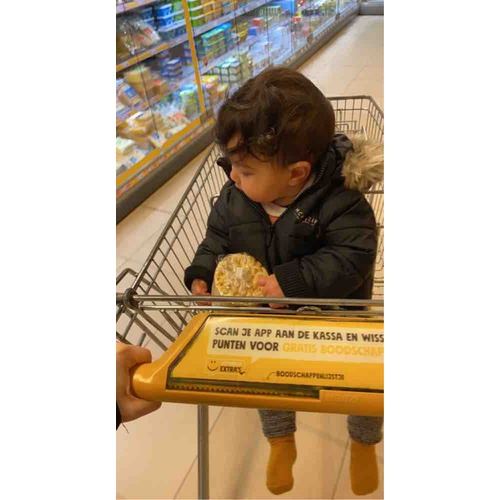 Ik heb het ook al een paar keer gedaan. Vanaf dat ze zelfstandig kunnen zitten. Het enige dat ik de vorige keer had was dat ze alles vast grabbelen uit mijn kar. Help ik had haar dan al een pakje in haar handen gegeven maar dan nog was ze aan het kijken waar ze misschien nog bij kon. 🙈