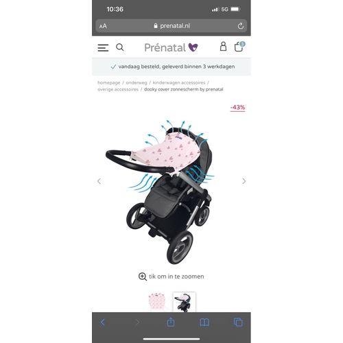 Mijn dochter is geboren in een week dat het heel heet was. Toen kregen we echt een dringend advies van de VK om nooit een doek/hydrofiel over de kinderwagen te leggen, want daardoor wordt het juist te heet in de wagen. Daarna hebben we op haar advies een parasolletje geregeld.