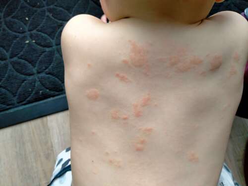 Onder andere de rug. Benen/gezicht/armen ook. Verschillende soorten roodheden, dit lijkt op krentenbaard (was het niet aldus huisarts) klopt ook. Want ook de rug is nu genezen.