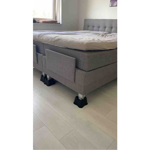 Ik heb nu een bed wat een hele stellage is. Ingebouwde nachtkastjes met lampjes, 3 lades welke in de ombouw vast zitten. We gaan deze dus niet verhogen. Ik kom 8 cm te kort en vind het prima. Mn man kan ook het bed verschonen en voor die 3 min durende controle, ga ik niet wekenlang met een trapje mn bed in en uit klimmen,.moet snachts 5x eruit in het donker om te plassen. Bij de vorige 3x eraf gevallen, het is wel.goed zo.