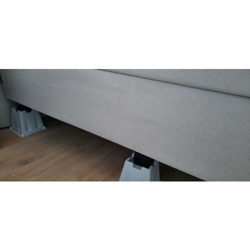 Dit past idd onder de meeste boxsprings niet. Wij hebben zojuist dit weekend ons bed verhoogd met bierkratjes. Werkt perfect! Bij onze supermarkt waren ze super makkelijk, €1.50 statiegeld per leeg kratje betaald en kan je weer inleveren wanneer je wil. Ze gaven zelfs de tip om wel alle kratjes van hetzelfde merk te nemen ivm een klein hoogteverschil tussen sommige merken.