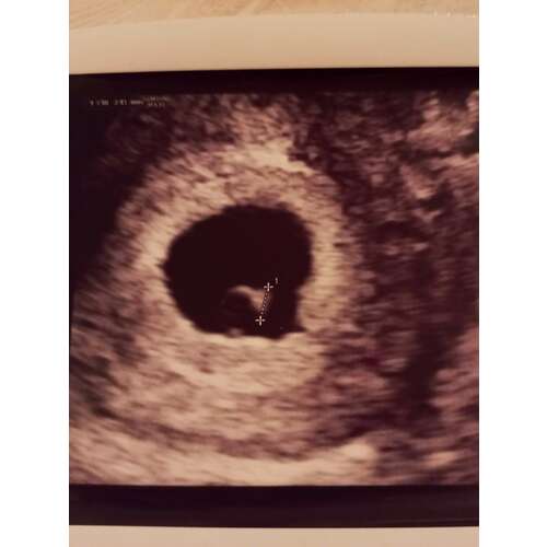 Dankjewel🥰 ik heb hier helaas geen foto van er was alleen een vruchtzakje te zien geen vruchtje en ook geen dooierzakje, een hele vroege zwangerschap zei de gynaecoloog en 2 weken later was ik dus 8 weken, een vruchtje met mooi kloppend hartje! Houd hoop! 🍀