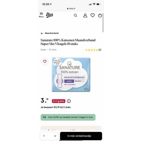 Ik ben 10 mei bevallen en ben overgegaan naar Etos Maandverband. Ideaal want het vangt nog best wat op als je meer gaat bewegen en plakt niet. Inmiddels heb ik sinds vandaag always dailies long plus.