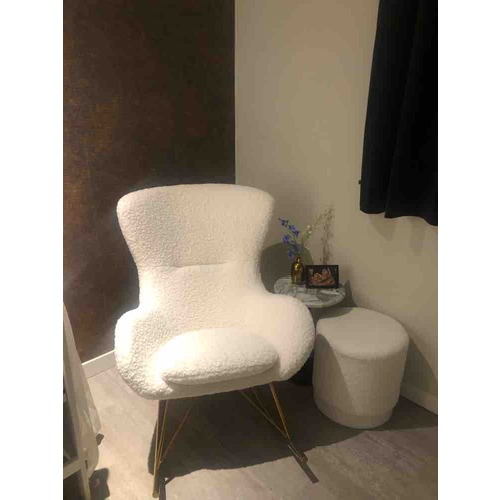 Ik heb een vaste stoel staan, zachte zitting en armleuningen maar wel wat hogere zit, zodat je ook makkelijk opstaat met kind. Lijkt me wiebelig met een baby in je armen zo'n schommelstoel, maar geen ervaring mee. Ik heb hem heel veel gebruikt, voor voeding, troosten, overdag voeden als er visite was enz. Dus hij staat er nu weer 😊