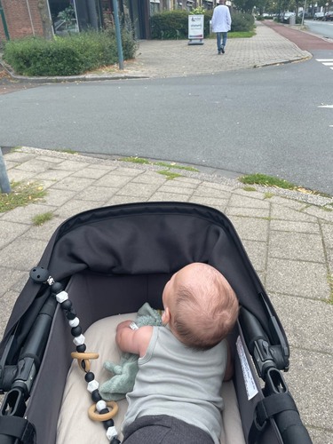 Vandaag gaan wandelen met de buggy in net niet helemaal ligstand. Hij vond het geweldig 👍🏻