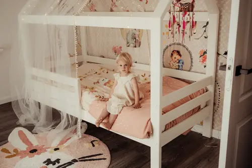 Wij hebben voor onze oudste een bedhuisje, maar iets anders dan op jouw fot ...
