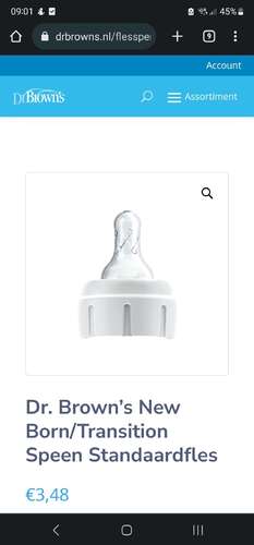 Ben echt wel bijzonder tevreden over het systeem van dr brown. Alleen die spenen waren echt flut. Hier is dus de m speen van difrax een succes. Die past precies in de witte ring van de fles.