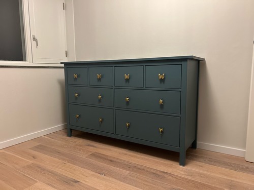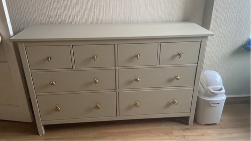 Ik heb deze op onze hemnes ladekast zitten (die ik donker mosgroen heb geverfd trouwens).
