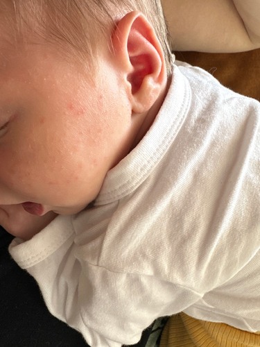 Onze kleine heeft dit ook en dit was baby acne door mijn hormonen nog. Na een weekje was dit over