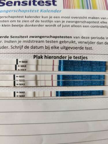 Hey! Ik gebruikte de zwangerschapstesten van sensitest. Ze hebben vroege hcg testen. Die gebruikte ik in het begin. Je ziet dat het streepje heel licht is en elke dag donkerder wordt.