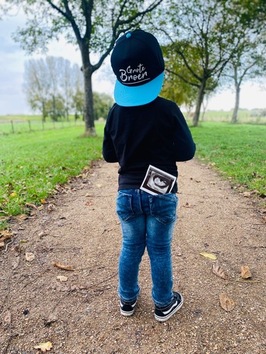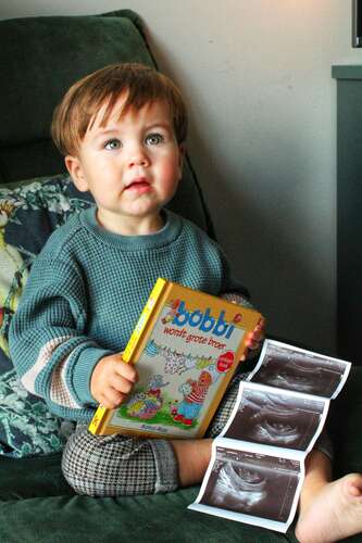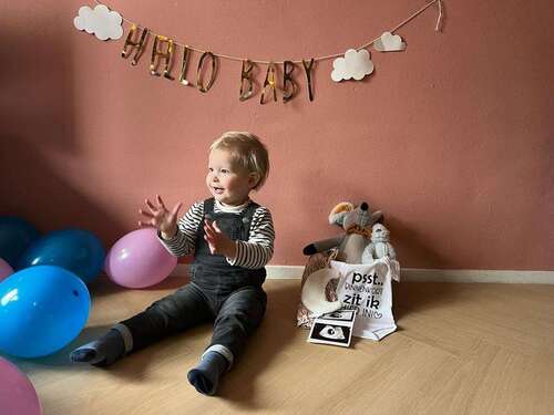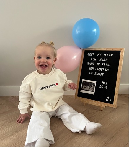 Wij hebben directe familie face tot face of telefonisch ingelicht. De overige familie hebben we een foto gestuurd. Wij hebben ook een grote familie, dus echt geen energie om iedereen langs te gaan.