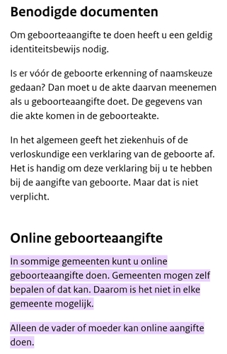 Misschien goed om te checken of je binnen de gemeente waar jij gaat bevallen ook online de geboorte aangifte kan doen. Dan hoef je de geboorte erkenningsakte ook niet mee te nemen naar het ziekenhuis