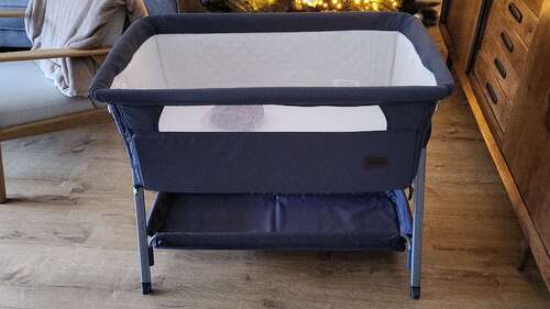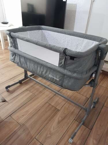 Reflux stand, goed in hoogte te verstellen (goed hoog ook) en de baby ligt iets lager dan je eigen matras waardoor het kindje er nooit uit kan rollen jouw kant op. Handig als je in de nacht per ongeluk de zijkant vergeet in te klappen 😅