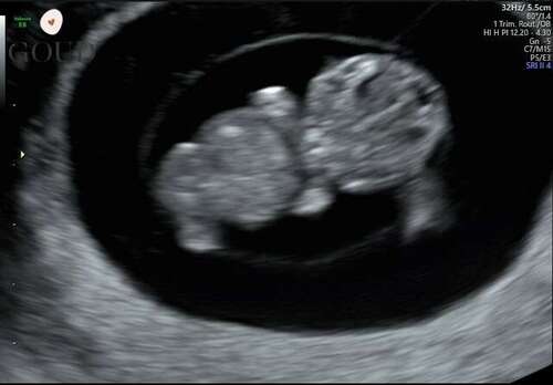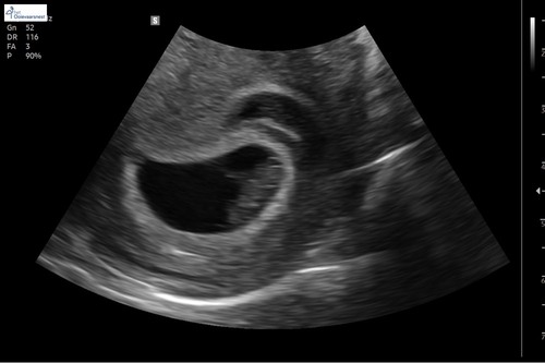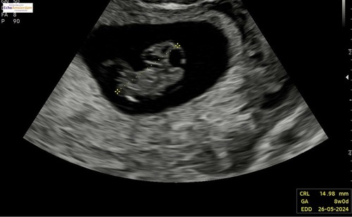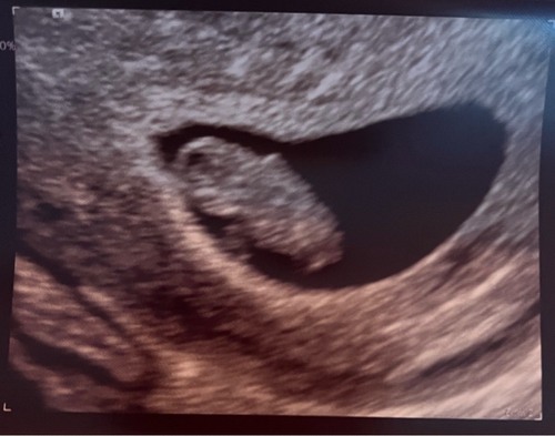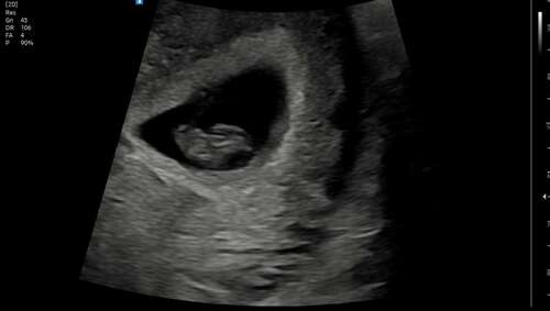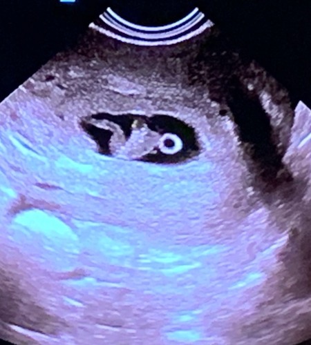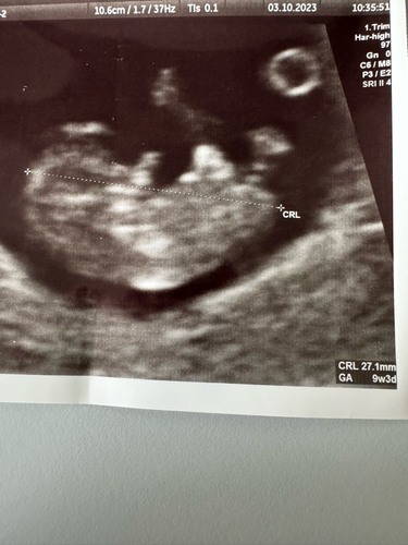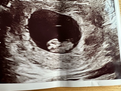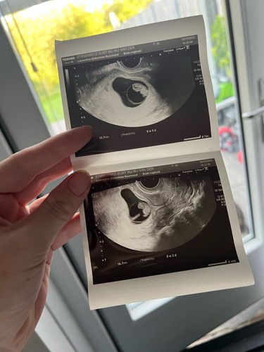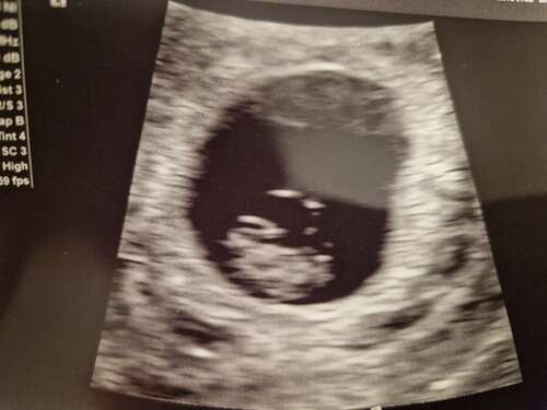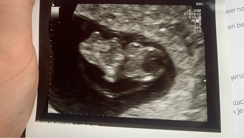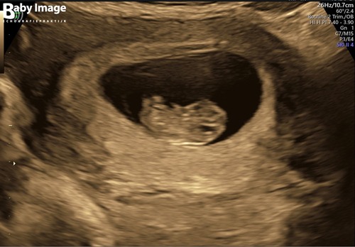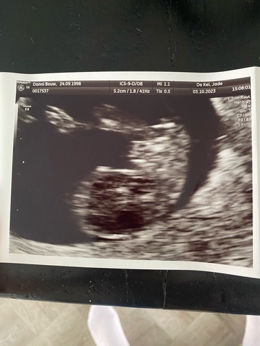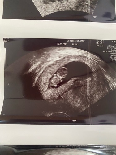 Hier de echo van 7+5 van het zijaanzicht via inwendige echo. Ik kan er niet veel van maken nog 😂😂