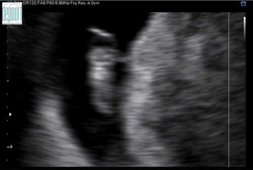 Deze was rond 8+4. Vroeger dan de vorige foto maar scherper beeld door ander echo apparaat!