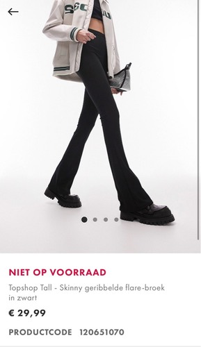 Ik heb bij de Sting flared broeken gehaald. Bij mij zijn ze juist te lang maar zitten wel ontzettend fijn! dus misschien daar eens kijken!