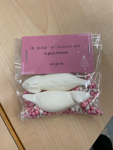 Donderdag neem ik afscheid van de kleuters (86 kindjes) en hier heb ik een traktatie voor gemaakt.