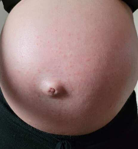 Sinds gisteren is het me opgevallen dat ik kleine rode bultjes rondom mijn navel begin te krijgen. (Momenteel 31 weken zwanger). De bultjes lijken nu vanochtend erger en roder te zijn en het begint licht te jeuken. Ik smeer wel dagelijks vanaf het begin mijn buik in met Welada zwangerschap body butter in om de huid soepel te houden. Is dit voor jullie een herkenbaar verschijnsel en zijn er tips wat ik er tegen kan doen?