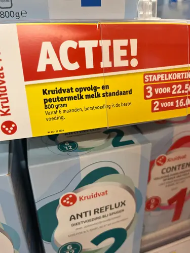 Dat vind ik echt heel bizar.. daar kan de kleine ook last van krijgen als ze steeds een andere hoeveelheid krijgt! Als we het toch over de Kruidvat hebben.. vind de tekst onder deze voeding ook best vervelend. Er zijn moeders die geen borstvoeding kunnen geven, en dan krijg je dit de hele tijd voor je neus “borstvoeding is de beste voeding”.