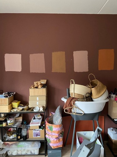 Het blijft altijd spannend hoe de kleur uit zal pakken bij jullie op de muur als je hem helemaal gaat schilderen, maar het is wel echt een warme en mooie kleur.