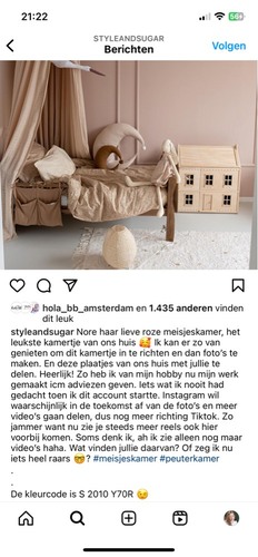 Het kamertje op je foto is van Style and Sugar, zie mijn screenshot. Ik heb aan hand van haar blog ook die sierlijsten en super mooie roze/beige kleur op de muur. Aanrader! Histor is regelmatig in de aanbieding bij Gamma dan is hij goed betaalbaar.