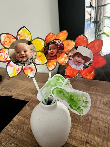 - Had een vaas gekocht en daarin bloemen gemaakt met de andere nichtjes + foto’s midden in de bloem