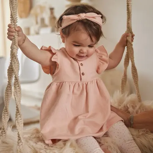 Onze dochter droeg een jurkje van Lil'Atelier. Zij loopt of staat ook nog niet, dit jurkje was perfect voor een kruipertje, want er zit een body in aan de binnenkant.