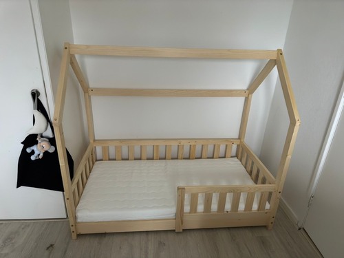 Wij hebben toen een meegroeibed gekocht, deze kan eerst op peuterstand en daarna groter gezet, ondertussen heeft ons 2e kindje het meegroeibed en onze oudste een groot 1 persoons bed
