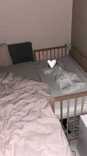 Wij hebben een IKEA sniglar ledikant omgebouwd. Tot co sleeper! Stukje schuimrubber aan de zijkant zodat er geen kier tussen ons matrassen zit en zo slaapt ze nog heerlijk bij ons🥰