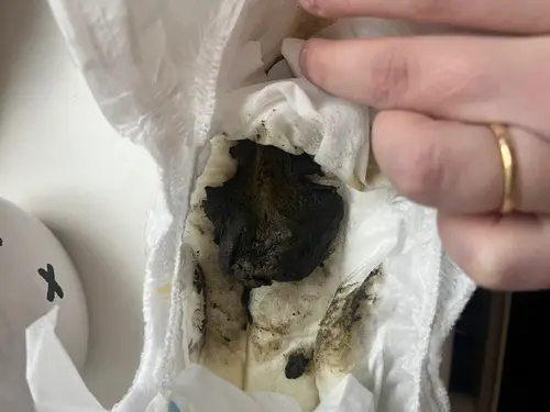 mijn zoontje heeft momenteel deze donkere harde ontlasting. 1,5 week geleden had hij dit ook een paar dagen en toen was het een tijdje normaal (nog steeds wel hard) en nu is t weer zo donker en hard. ik vroeg me af of dit normaal is? heb er echt geen verstand van haha