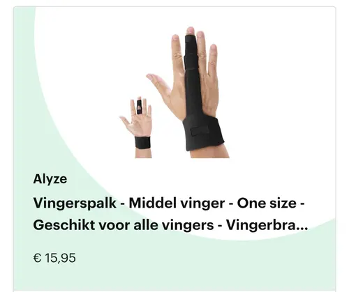 Je kunt met dat spalkje ook een 2de vinger er bij aan vast maken en hij is op maat verstelbaar met klittenband. En van zacht materiaal, ik vondt m perfect