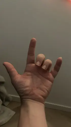 Het is niet echt pijnlijk, behalve als ik de vingers recht wil buigen.