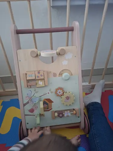 Onze dochter vermaakt zich heel goed met simpele stapelbekers en een oball. Ze heeft verder nog niet veel speelgoed krijgt met kerst wel een activiteiten kubus van little Dutch en een houten loopwagen met allerlei dingen waar ze mee kan spelen