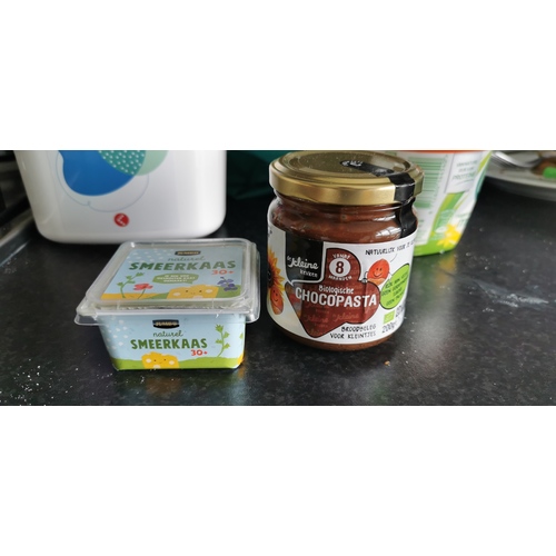 Van die rechtse hebben ze ook een soort smeersel van bieten & aardbei en pompoen & mango. Smeerkaas max 2 x per week. Je kan op de pindakaas ook een x geprakte banaan overheen doen. Moet je zelf maar eens proeven, te lekker!
